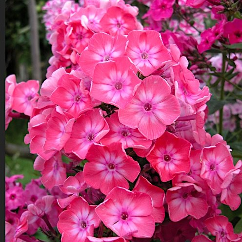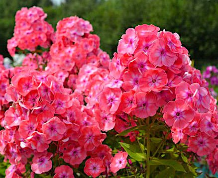 Флоксы российской селекции все больше радуют нас! Флокс Илларион - очень красивый сорт с пышными кораллово-розовыми соцветиями! Его цветки крупные, диаметром 4,5 см. с немного волнистыми краями лососевого цвета, от пурпурного колечка в центре расходится светлая лучистая звездочка. Крупные цветки собраны в пышные овальные соцветия, которые крепко держатся на прочных стеблях. Аромат приятный, цветочный. Яркий и притягательный, флокс Илларион привлекает множество бабочек, долго цветет и идеально вписывается в летние цветники с флоксами кораллово-розовой гаммы!