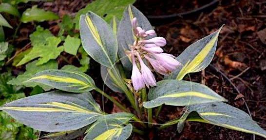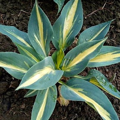 Прекрасная хоста Пати Поппер / Party Popper небольшого размера, с достаточно плотными остроконечными листьями. Узкий центр листа окрашен кремово-желтым цветом, широкие края - темной сине-зеленой полосой. Место посадки - полутень/тень. |