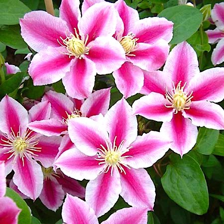 Яркий и изысканный, клематис Анжела / Clematis Angela относится к группе компактных раноцветущих. Открытые цветы размером 7-10см. имеют 6-8 бело-розовых лепестков с широкой интенсивно-розовой серединой и желтоватыми тычинками. Если укрыть клематис на зиму, то цветение наступит рано весной на побегах прошлого года. Если их не сохранить, то на новых побегах цветы распустятся в июле. |