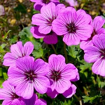 Герань пепельная Сатин / Geranium cinereum Sateene - совершенно превосходный низкорослый многолетник! Она зацветает в самом начале лета множеством сиренево-розовых цветков с атласным блеском и темной серединкой, покрывающих резные серебристо-зеленые листочки. После дружного цветения немного отдыхает, а затем снова продолжает цветение до сентября. Хорошие условия для нее - дренированная почва на солнечном месте. В композициях ее нужно поместить на передний план, в качестве бордюра или на альпийскую горку. Очень нарядно смотрится с желтолистными растениями или с синими цветами. |